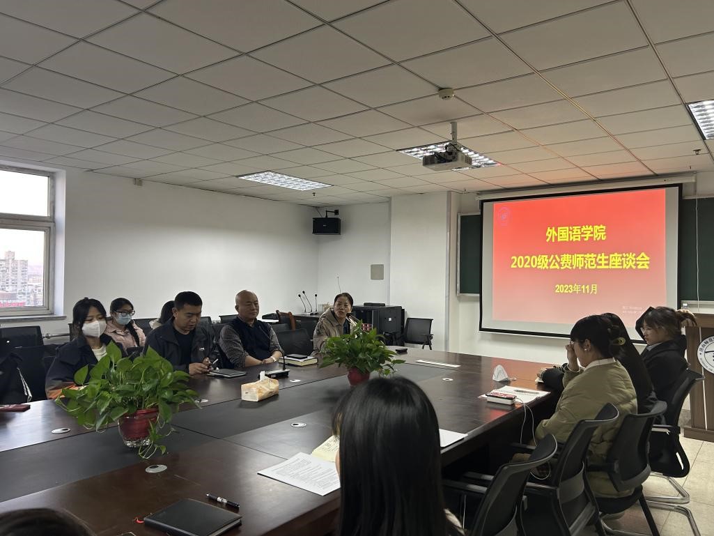 2023年11月30日下午,开云kaiyun官方网站在1521会议室召开本学期2020级公费师范生座谈会,开云kaiyun官方网站党总支书记刘建宏、院长唐翠云、副书记兼班主任谷世海、学业导师许文英、公费师范生论文指导老师和全体2020级公费师范生参加了本次座谈会。