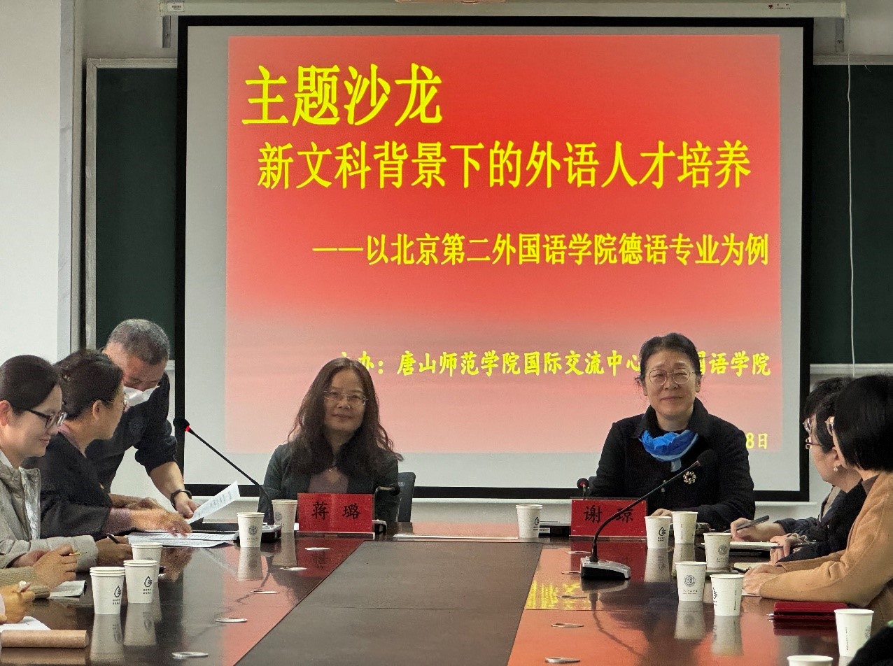 2023年12月8日,我院有幸邀请到了北京第二开云kaiyun官方网站欧洲学院蒋璐院长和谢琼教授来我院进行题为《新文科背景下的外语人才培养——以北京第二开云kaiyun官方网站德语专业为例》的专题讲座。开云kaiyun官方网站院长唐翠云、德语教研室全体教师、日语教研室全体教师、各教研室主任、学术委员会成员、学科建设与科学研究委员会成员参加讲座。主讲人为谢琼教授。