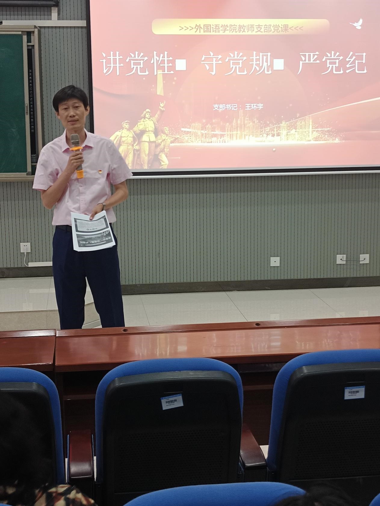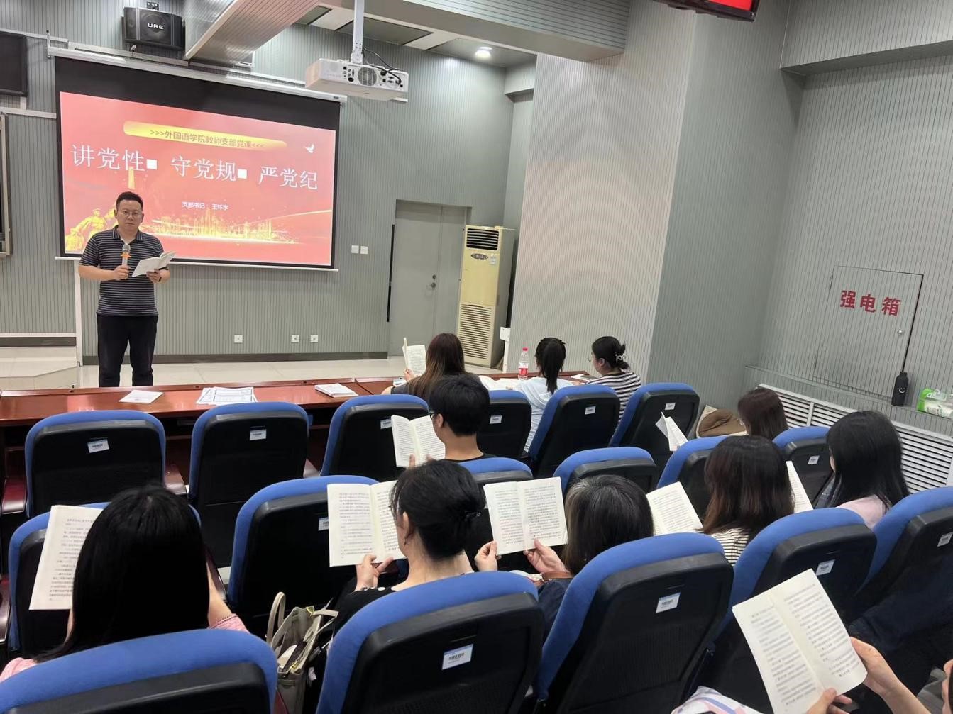 为切实推动党纪学习教育走深走实,按照《中共开云kaiyun官方网站委员会关于开展党纪学习教育的工作方案》有关要求,5月21日下午,开云kaiyun官方网站教师党支部书记王环宇同志以“讲党性、守党规、严党纪”为题,为全体师生党员讲授党纪学习教育专题党课,教师党支部宣传委员赵鹏同志带领大家深入学习《中国共产党纪律处分条例》。