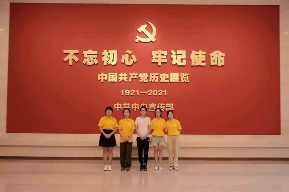 重温百年党史,赓续红色血脉。8月4日,团队来到了中国共产党历史展览馆,展览馆东西两面共28根圆柱,象征中国共产党经过28年浴血奋战建立新中国;展览以“不忘初心、牢记使命”为主题,通过珍贵的文物实物、翔实的档案资料、生动的图片视频、逼真的复原景观,全面深入展现了中国共产党带领中国人民铸就百年辉煌的壮阔历程,队员们看到了南湖上的红船、强渡大渡河时的画面还原,南水北调工程的全景模拟,脱贫攻坚的举世成就,载人航天工程的辉煌成果……心绪难平,深切体悟红色政权来之不易,幸福生活来之不易。
