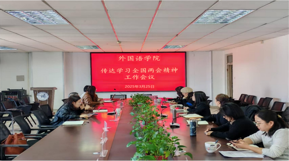 随后,黄静书记带领与会人员共同学习了两会的主要精神,重点解读了政府工作报告中与教育领域相关的内容。报告强调要坚持以人民为中心发展教育,加快建设高质量教育体系,推进教育强国建设。这一要求为学院今后的发展指明了方向。结合学院实际情况,黄书记提出,全体教职工要深刻领会两会精神,将教育强国的使命与自身工作紧密结合起来,广大教师要将两会精神融入课堂教学,实现思政教育与专业教学有机融合,不断提升教育教学质量,努力培养具有国际视野、跨文化交流能力和创新精神的高素质外语人才。