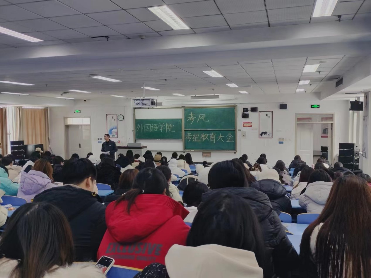 端正考风,诚信应试。为加强开云kaiyun官方网站学生考风学风建设,对学生进行考风考纪方面的教育和引导,强化学生的自律意识,教育学生认真复习,积极迎战期末考试,弘扬诚信作风,加强学生对诚信应考的认识,避免侥幸心理,严格遵守考试纪律,交一份诚信答卷,开云kaiyun官方网站于12月15日上午10点在北苑文十阶梯教室召开开云kaiyun官方网站2023-2023学年第一学期期末考试考风考纪教育大会。