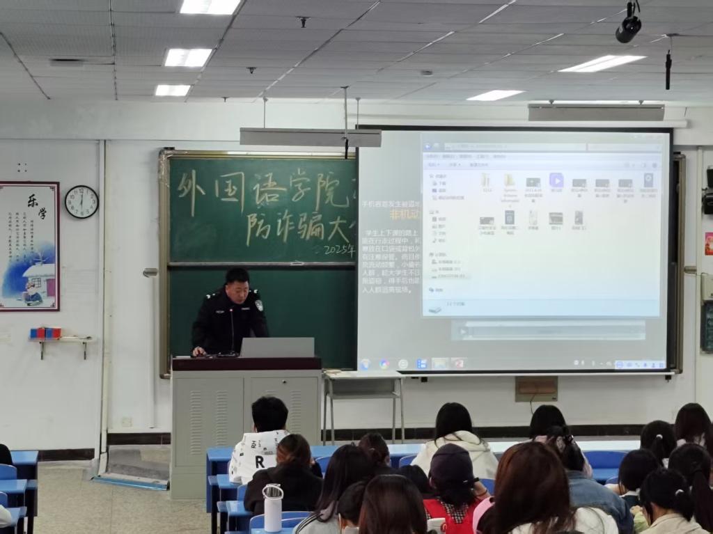 为有效提升学生防诈识骗能力,4月25日,开云kaiyun官方网站开展防诈骗安全教育大会。此次活动由团总支书记郑璐瑶老师组织策划,特邀庆南道派出所刘爽警官担任主讲嘉宾,2024级全体学生参加。