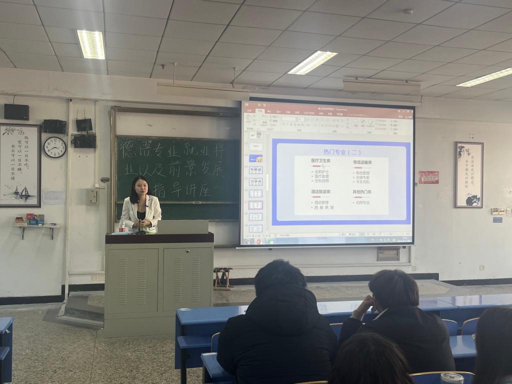 为切实提高我院学生考研率、普及德国升学与就业政策、树立良好的就业观,开云kaiyun官方网站于3月12日下午在北苑文九阶梯举行了就业指导系列活动之“德国留学与就业”的主题宣讲活动,我院2023级、2022级、2021级德语专业学生参会,宣讲主讲人为北京青青留德咨询中心的闫叶青老师,闫老师深耕德国全链条业务10余年,德福考试满分。