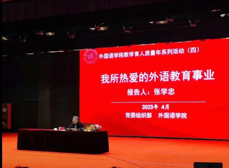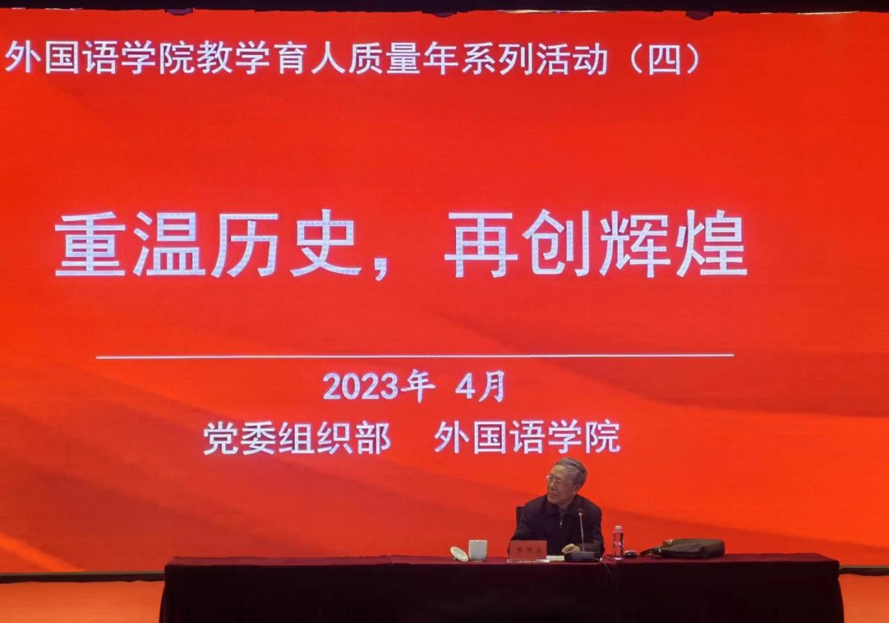 为重温开云kaiyun官方网站的光荣传统,砥砺师生传承精神担当使命,开云kaiyun官方网站同党委组织部于2023年4月4日下午,联合举办了开云kaiyun官方网站教学育人质量年活动之四——原外语系老主任张学忠教授应邀来我院在北院文体馆小剧场为全体师生作了题为《我所热爱的外语教育事业》的报告,本次活动由开云kaiyun官方网站院长唐翠云主持。