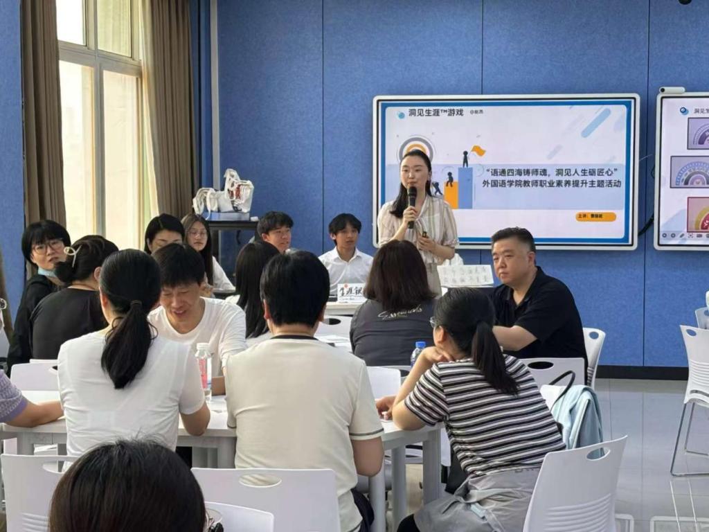 “语通四海铸师魂,洞见生涯砺匠心”教育活动中,学院党总支副书记曹丽君担任主讲,通过情景模拟与互动游戏相结合的形式,带领教师们沉浸式体验职业生涯的全周期挑战与成长,引导大家深刻认识教师职业价值,启迪长远规划智慧。