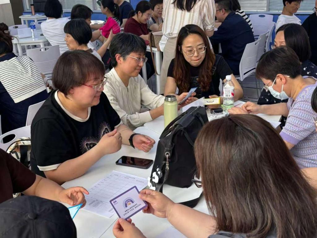 “语通四海铸师魂,洞见生涯砺匠心”教育活动的互动研讨环节,教师们围绕理想人生、团队协作、危机应对等话题展开深度交流。面对“无常卡”模拟的突发困境,各组成员通过资源共享、策略调整共渡难关,充分彰显了团队协作的力量和教育者共担使命的情怀。